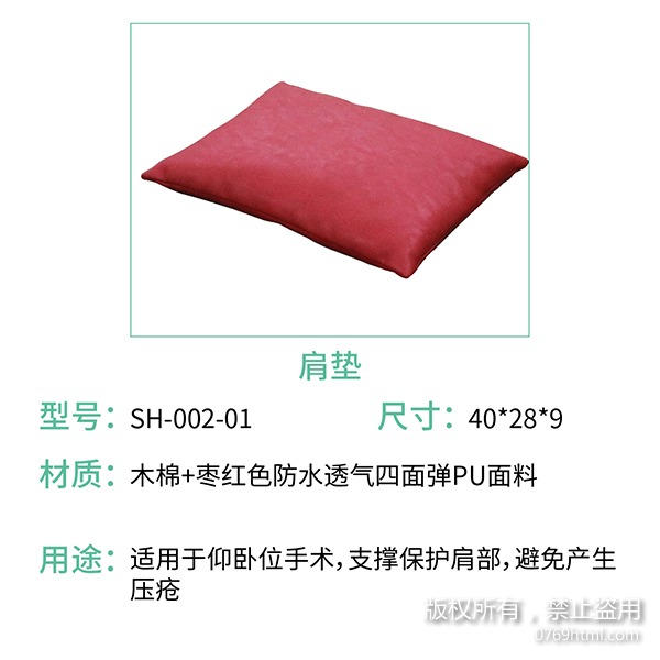蒙泰護(hù)理的海綿體位墊系列中胸墊的研發(fā)是和與手術(shù)室臨床護(hù)理專家共同研發(fā)而成,選用海藻棉,外套棗紅色防水透氣面料,在臨床俯臥位手術(shù)、側(cè)臥位手術(shù)有良好的應(yīng)用,保持良好的呼吸循環(huán),避免壓瘡的發(fā)生。