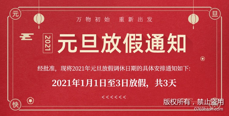 2021年1月1日至2021年1月3日,共計(jì)3天,2021年1月4日正常上班,放假期間,望各位出行注意防護(hù)以及保暖哦!